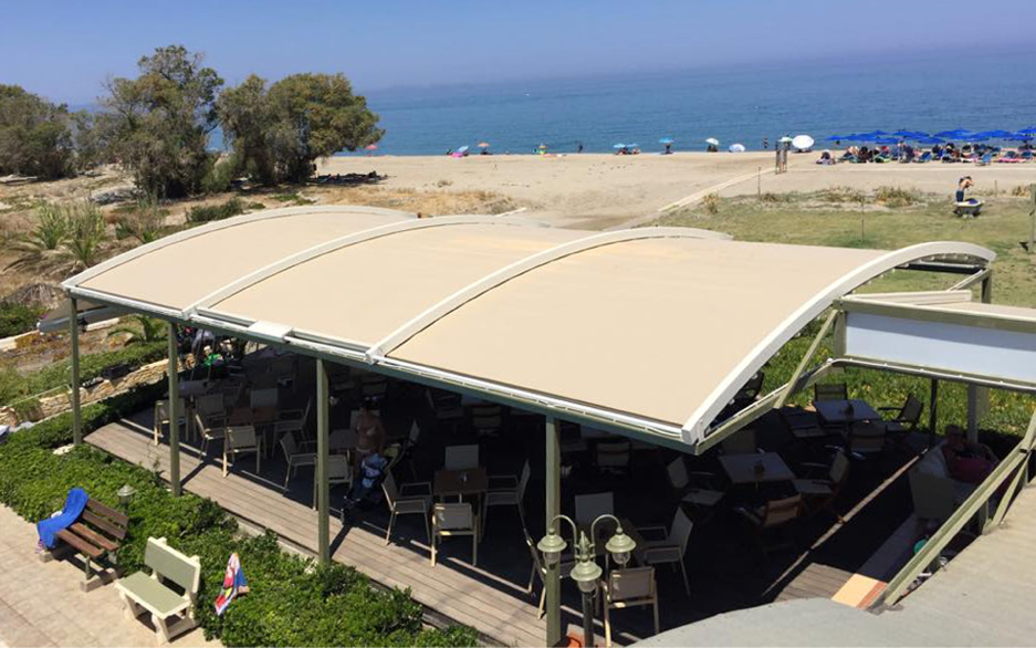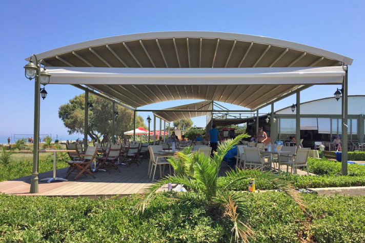 Αυτόνομη κουρμπαριστή τεντοπέργκολα για μεγάλα μήκη