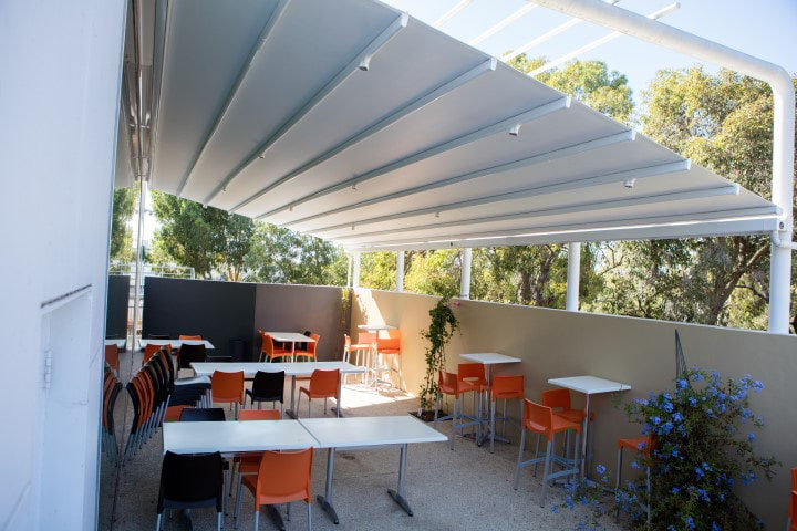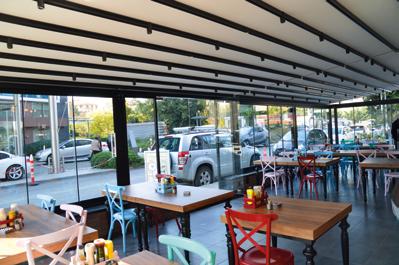 - Δυνατότητα περιμετρικής κάλυψης με την τοποθέτηση τηλεσκοπικών πορτών, ανεμοθραυστών ή κάθετων τεντών (ριντό).